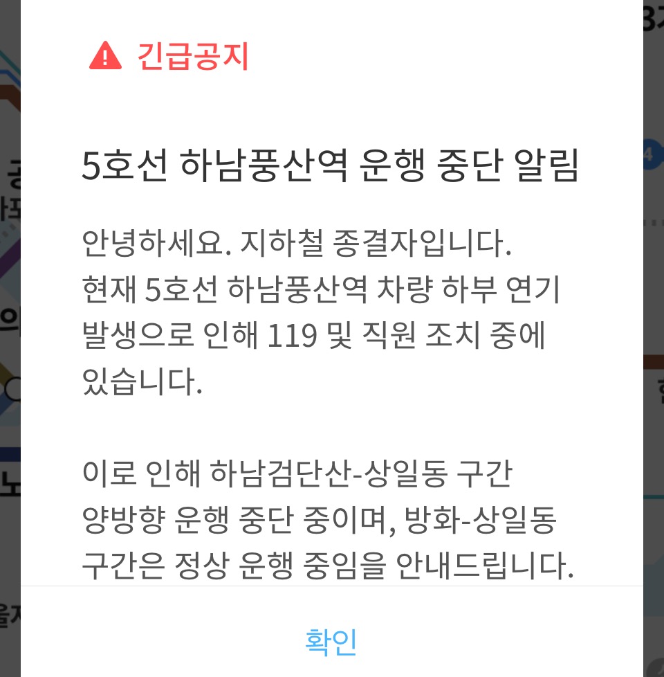 왜그런가 봤더니 화재가 발생해서 지하철이 오지 않았나봐요 ..!